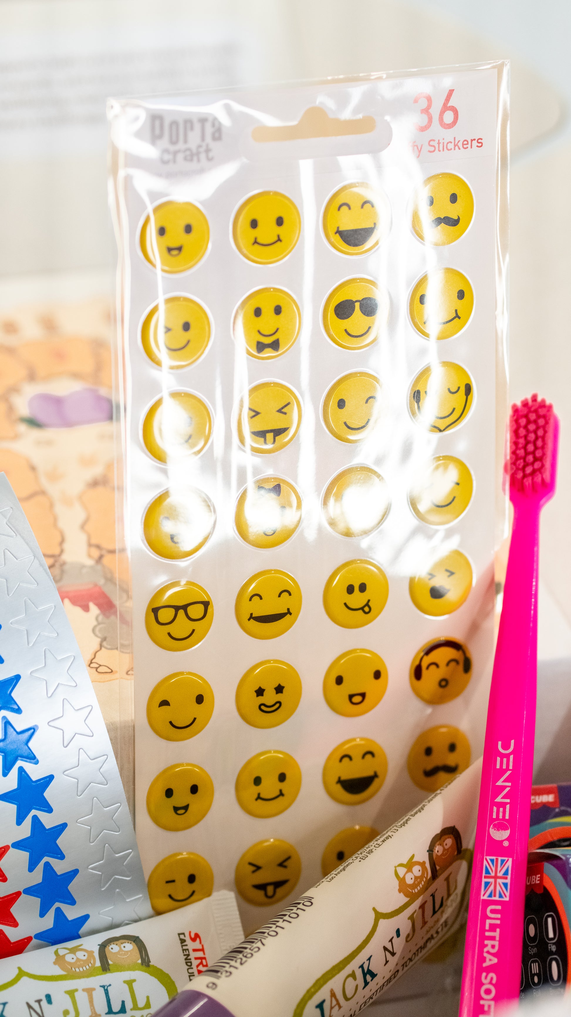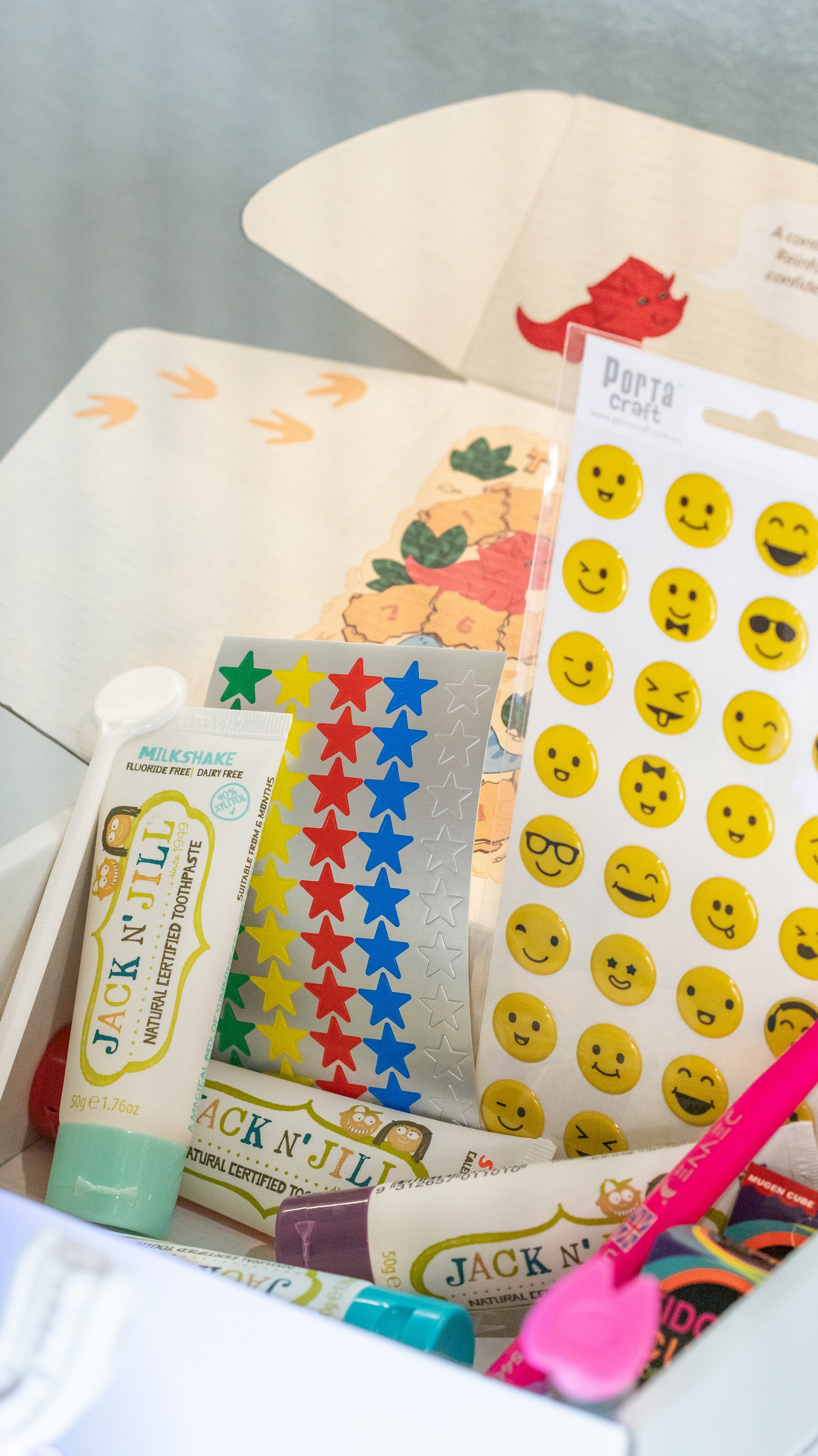 - Stickers for personalising their box and brushing chart